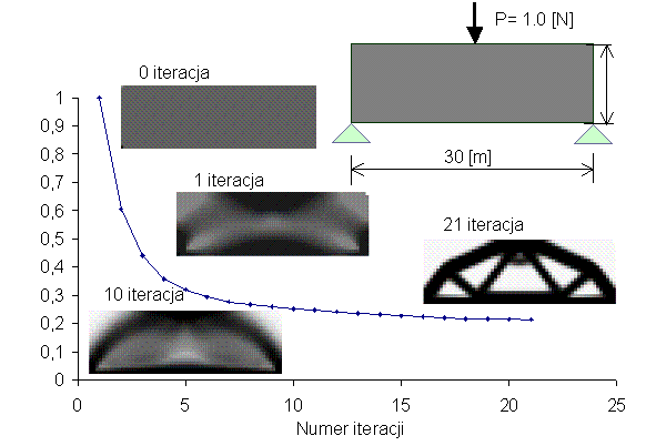 Minimalizacja globalnej podatnosci w kolejnych krokach iteracyjnych oraz optymalne rozmieszczenie zastępczego materiału dla tarczy swobodnie podpartej i równomiernie obciażonej