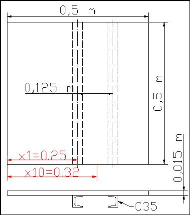 Geometria układu, oraz optymalna odległosć pomiędzy usztywnieniami zapewniajaca układowi tłumienie niepożadanych częstosci drgań